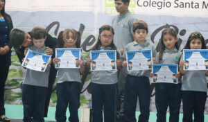 El Premio Santa María, destinado a aquellos estudiantes que destacaron por su compromiso con los valores institucionales y su ejemplo de compañerismo, fue otorgado en Kínder A a Aron Maximiliano Varela Urra, mientras que en Kínder B, el reconocimiento fue para Antonella Pascale Ortúzar Guzmán.