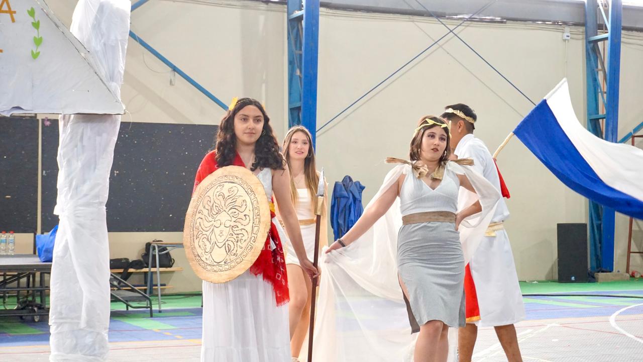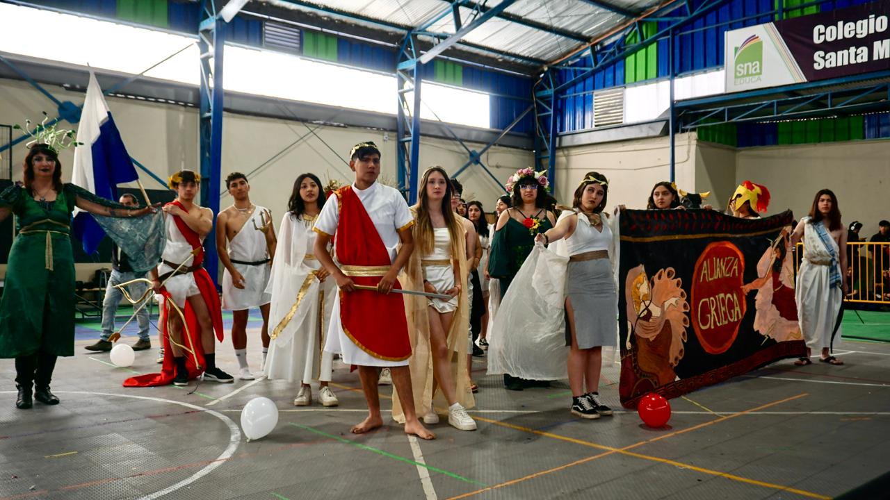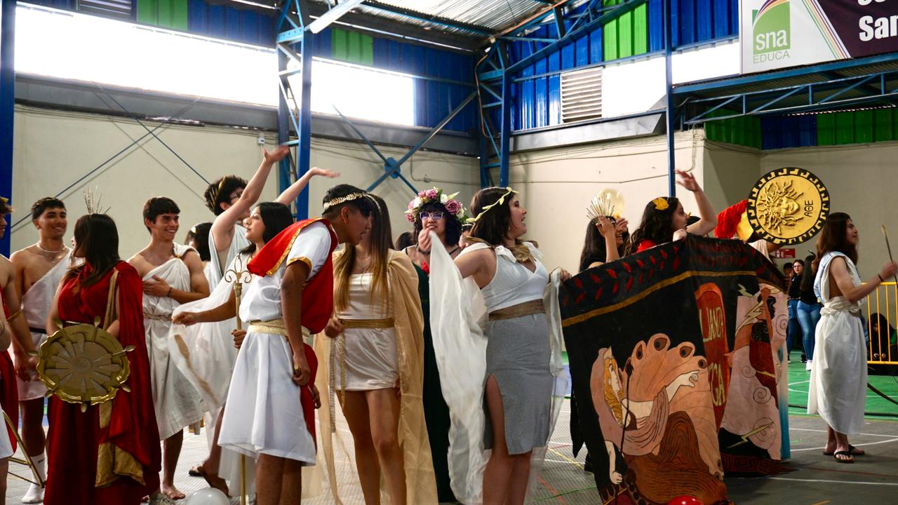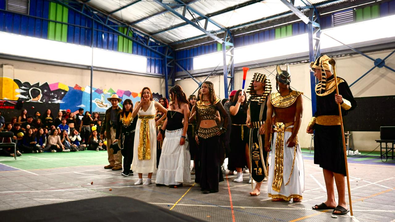 Este año, la celebración adoptó una temática histórica que dio identidad a cada equipo participante. Se conformaron dos grandes alianzas: Egipto, integrada por los cursos A y C de I° a IV° medio; y Grecia, compuesta por los cursos B y D del mismo nivel. Ambas alianzas se enfrentaron en múltiples pruebas, destacando el ingenio, la coordinación y el compromiso de cada grupo.