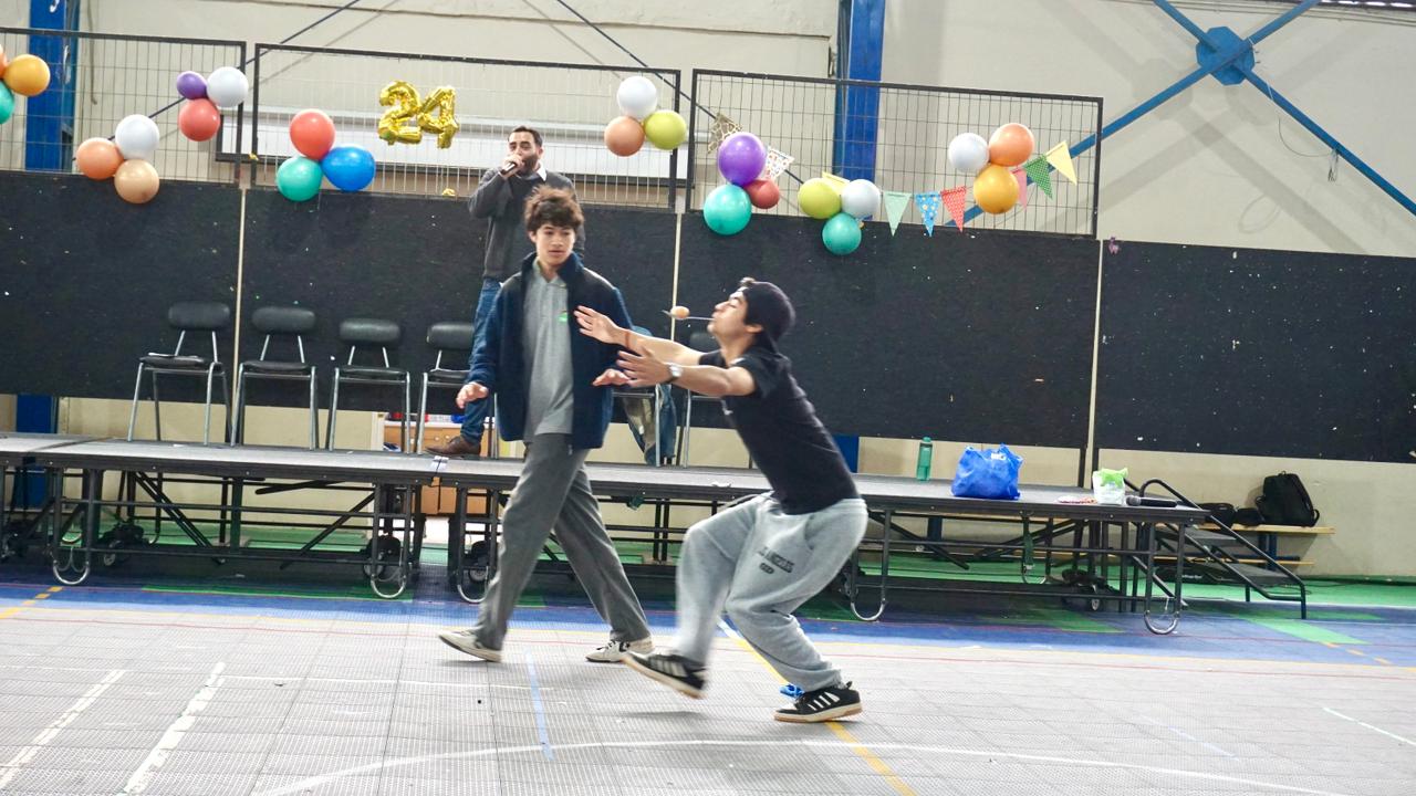 La comunidad escolar celebró su vigésimo cuarto aniversario con dos jornadas marcadas por la alegría, la participación y el espíritu de compañerismo. Las actividades fueron organizadas por el Centro de Estudiantes, quienes diseñaron una serie de competencias entre alianzas de enseñanza media, con una amplia y activa participación de los cursos involucrados.