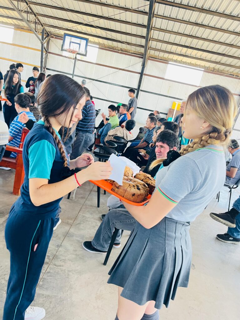 Como parte del cierre de esta jornada, los estudiantes prepararon una representación navideña que fue compartida con los internos del hogar. La actividad fue acompañada de un gesto fraterno: la entrega de pan de pascua, símbolo de unión y cercanía, que permitió compartir un momento de alegría y sentido comunitario.
