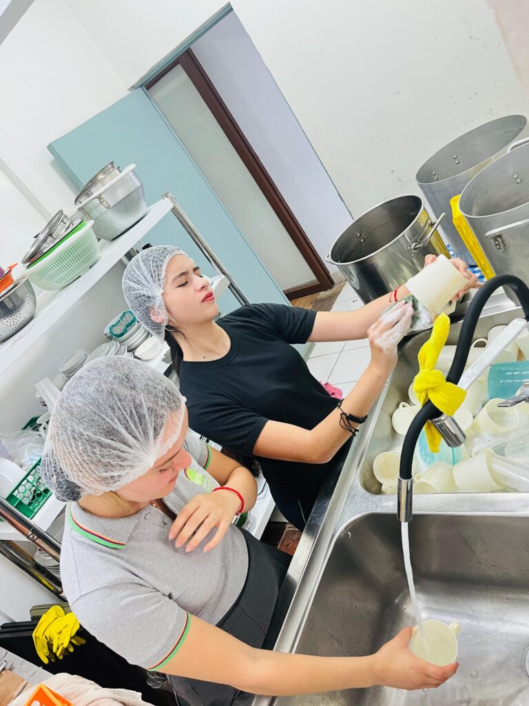Durante la visita, los estudiantes realizaron tareas concretas en áreas como el campo, la cocina y la lavandería, además de compartir tiempo con los residentes del hogar. El encuentro cercano con las personas mayores permitió a los jóvenes desarrollar habilidades de escucha y empatía, prestando atención a gestos, palabras y necesidades cotidianas.
