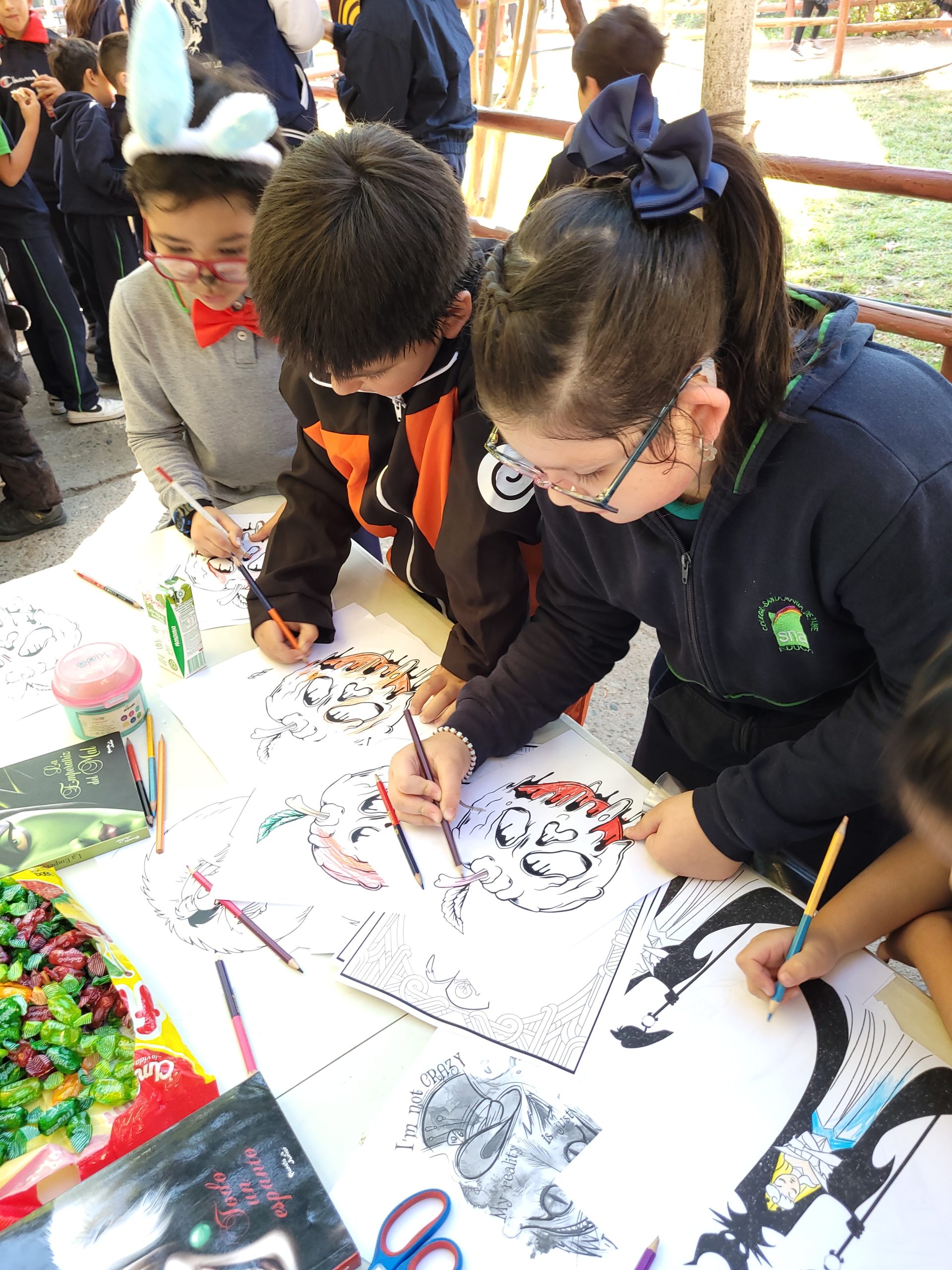 Durante la actividad, los estudiantes se prepararon en torno a la temática de los villanos, abordando personajes clásicos del cómic y la literatura universal como Joker, Darth Vader y Drácula. A través de dinámicas participativas, objetos representativos, libros, escenografías y caritas pintadas, lograron enseñar y compartir con sus compañeros las características, motivaciones y contextos de estos icónicos antagonistas, generando un espacio de aprendizaje activo y creativo.