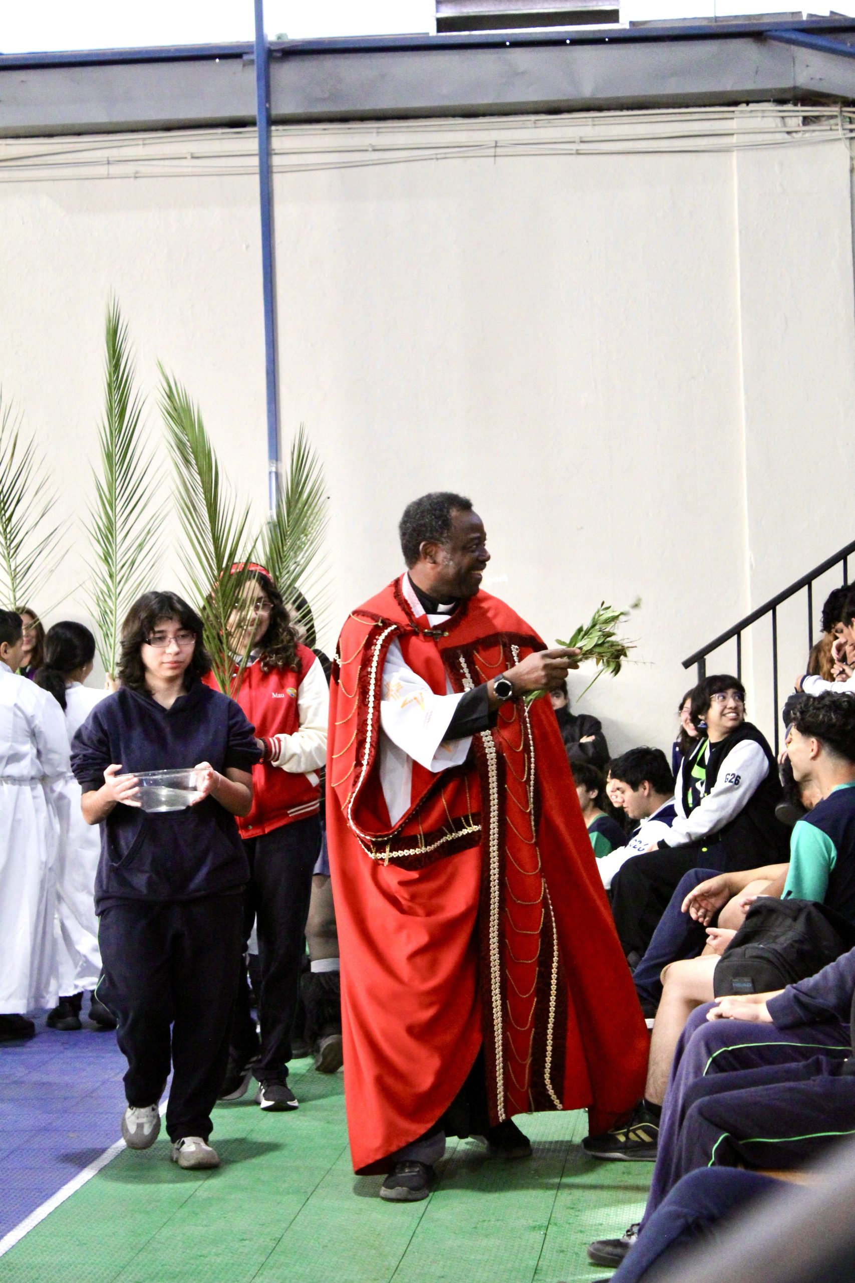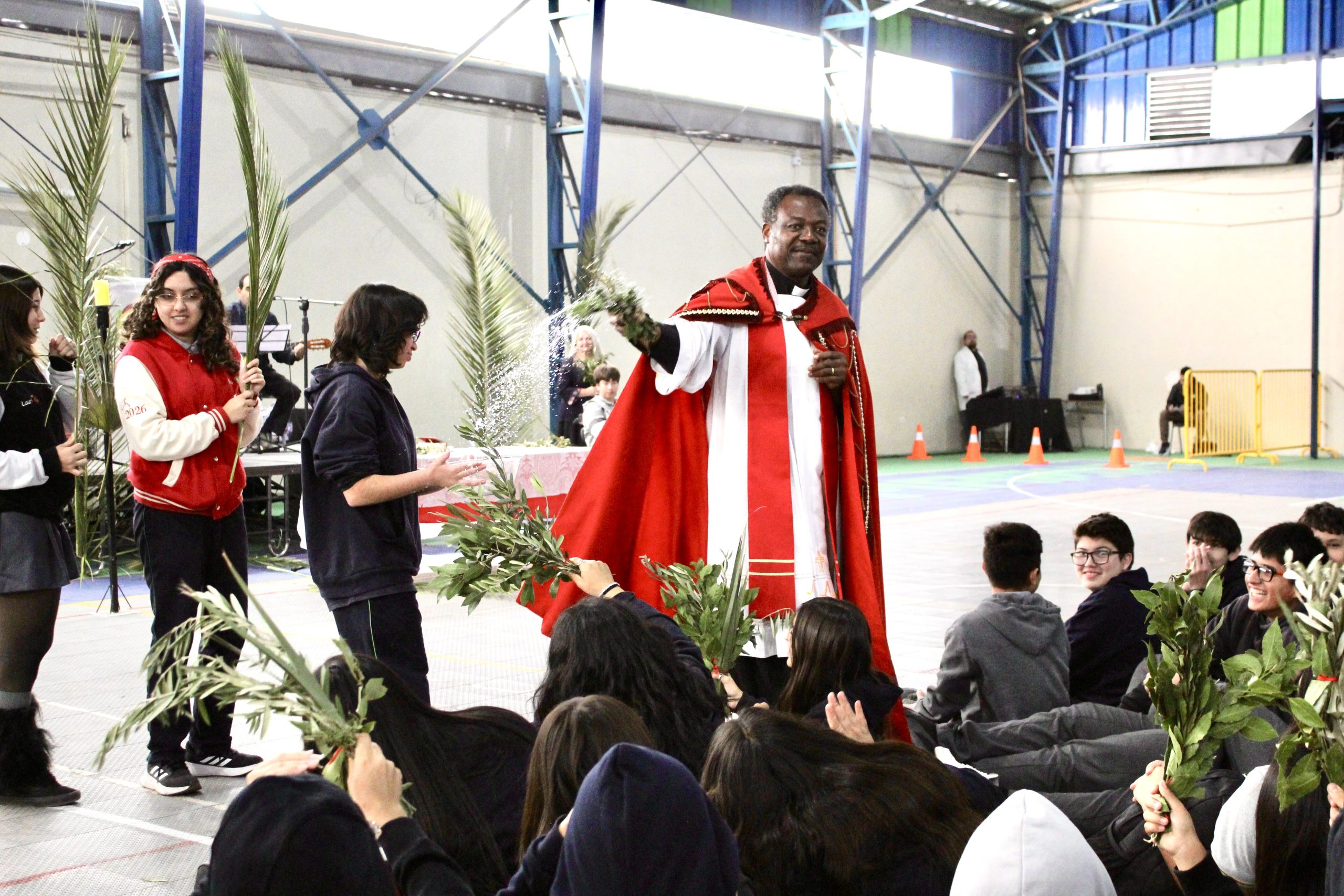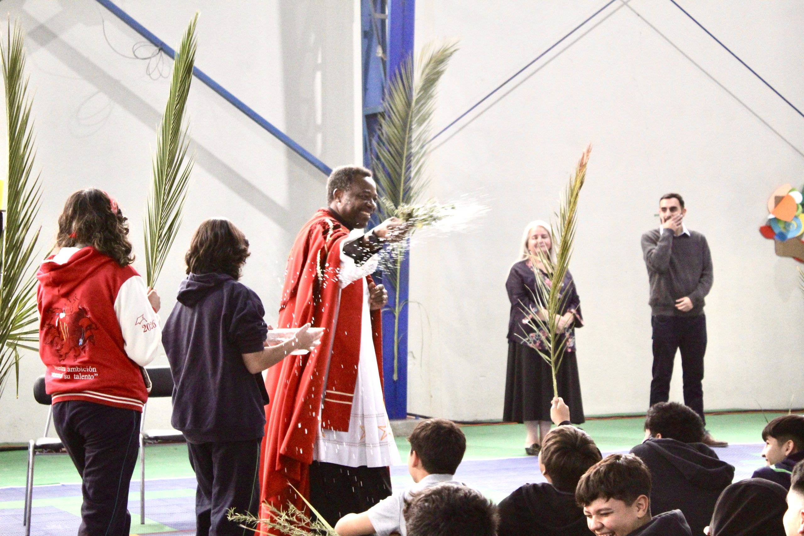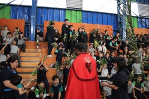 La jornada estuvo guiada por el padre Agustín, quien presidió la misa junto al equipo de Pastoral del colegio, liderado por el docente Lino Jara. En esta instancia, se vivió una liturgia de bendición de ramos, momento central de esta celebración, donde los estudiantes participaron activamente en un ambiente de respeto y reflexión.