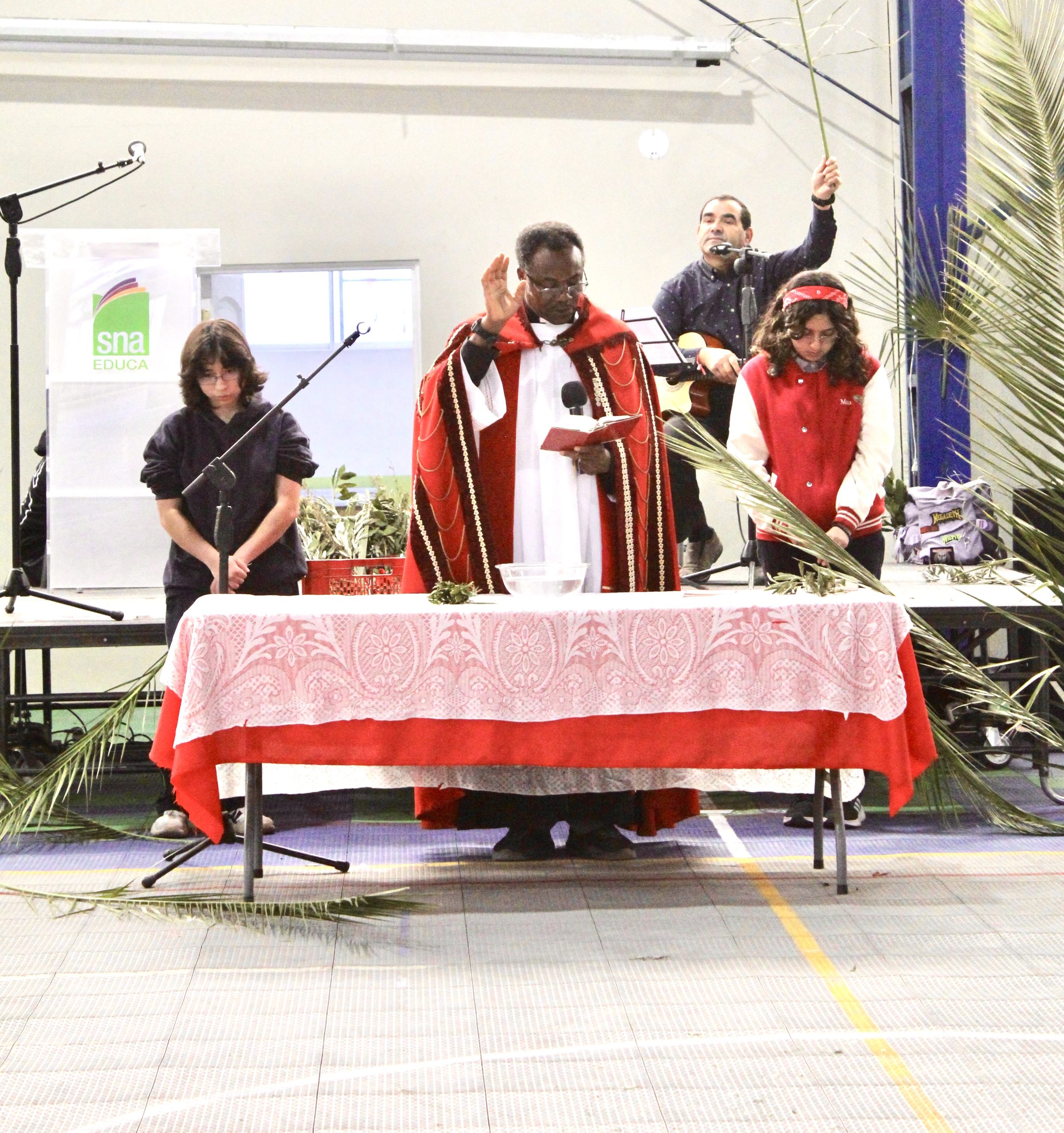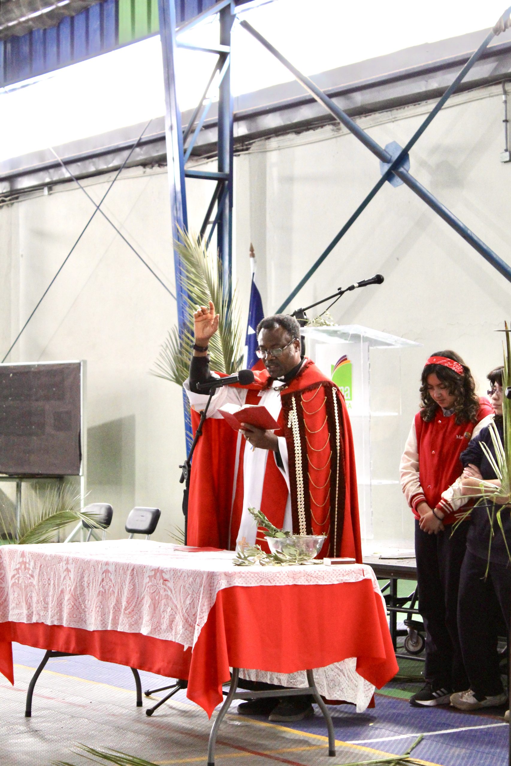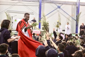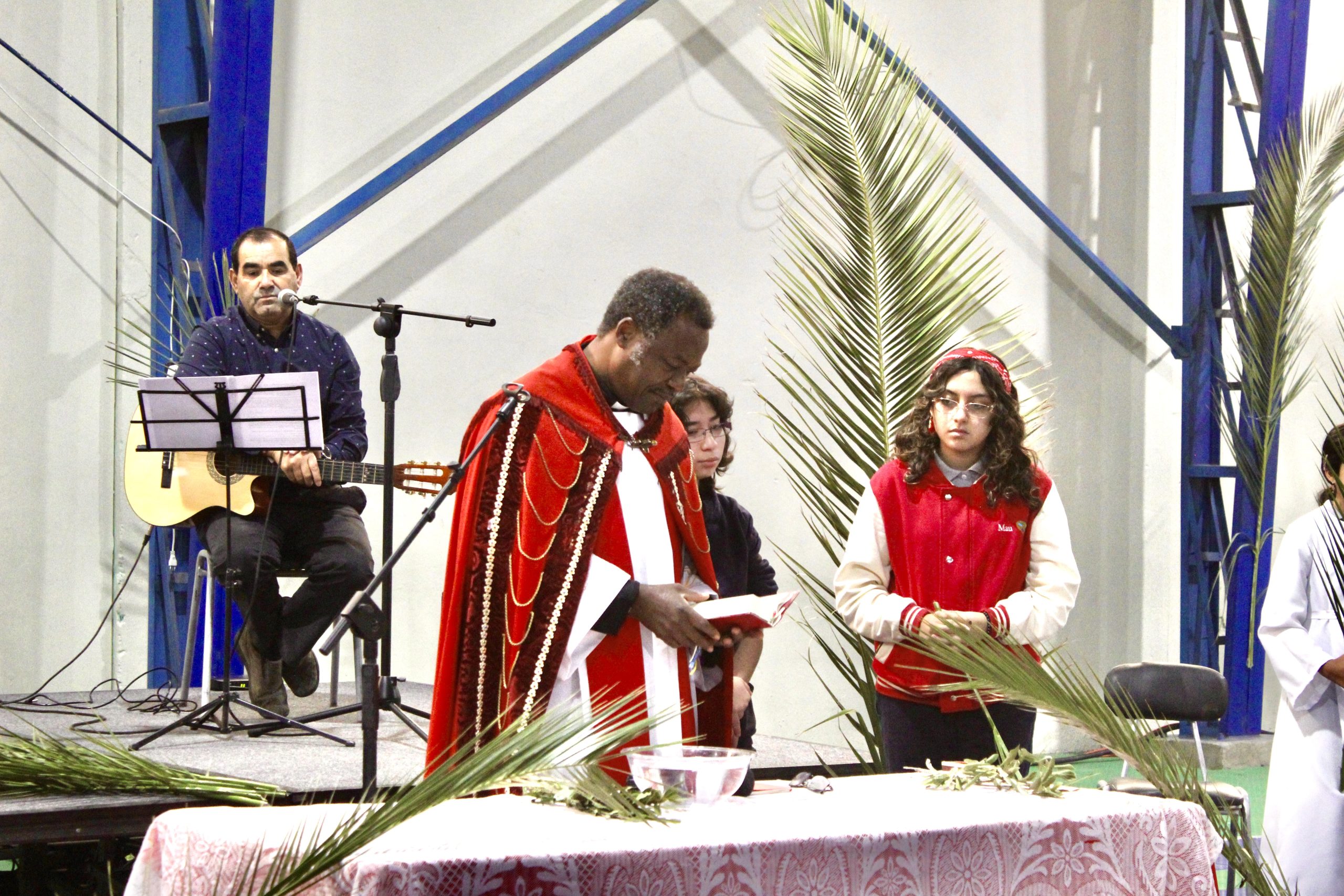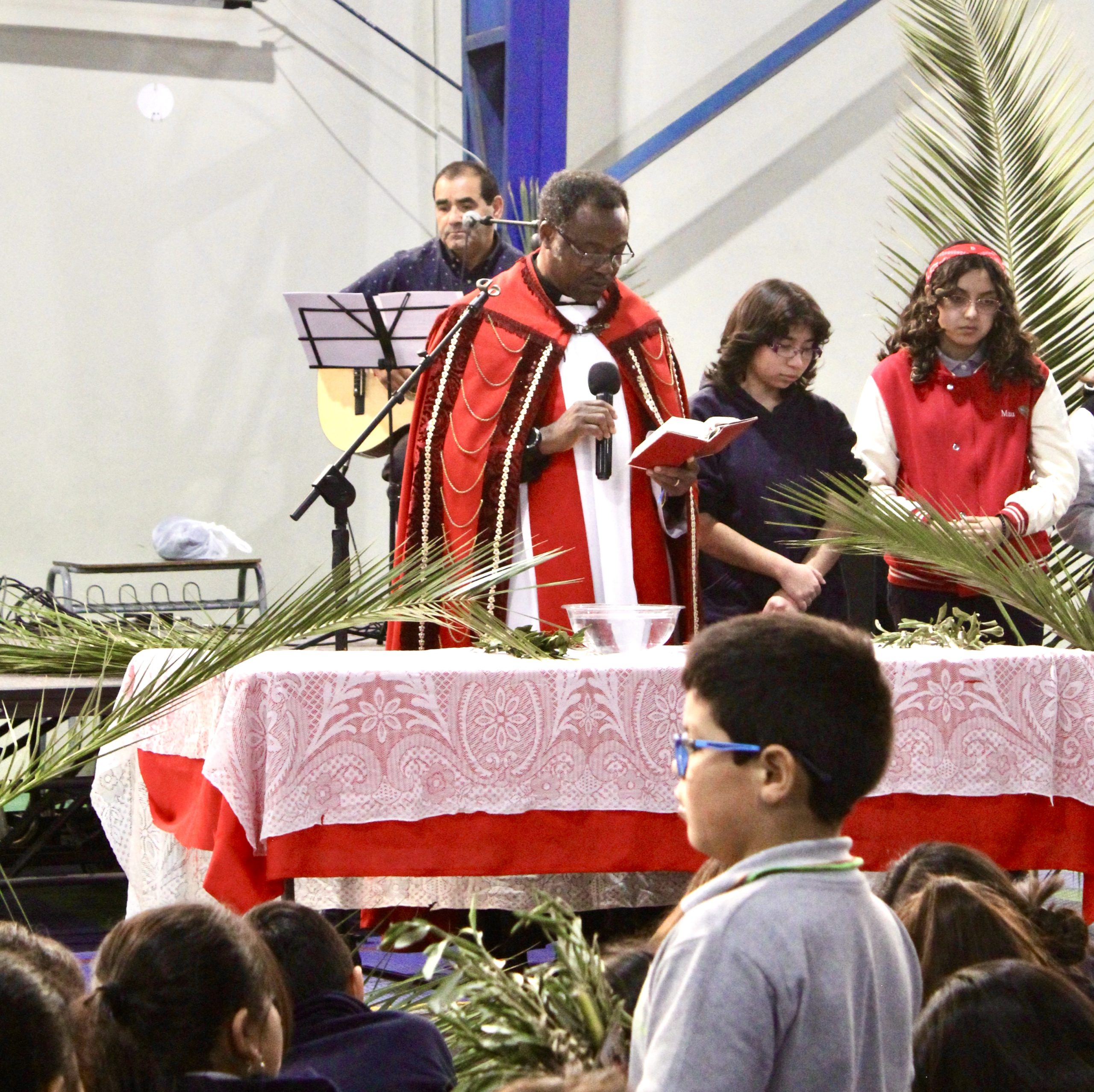 La jornada estuvo guiada por el padre Agustín, quien presidió la misa junto al equipo de Pastoral del colegio, liderado por el docente Lino Jara. En esta instancia, se vivió una liturgia de bendición de ramos, momento central de esta celebración, donde los estudiantes participaron activamente en un ambiente de respeto y reflexión.